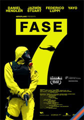 Fase 7: La película es como un combo de colores. La película empieza con una pareja de clase media en pleno supermercado, que discuten sobre el malhumor del masculino (Hendler) a la hora de hacer las compras. Con chocolate de frutilla de por medio, nosotros vemos en un segundo plano a gente gritando y corriendo. Fase 7 es una película con un nombre bastante original, que se alimenta de una música constante y que se aprovecha de copias americanas del terror. Goldbart lo que hace es agregarle un humor negro y una locura casi que no pega con lo que se vive. Nosotros nos informamos a través del televisor, mientras estamos metidos en un edificio, con las ventanas tapadas, y con las luces titilando. Ya desde el principio de la película, sabemos que en total hay dieciséis personas y una empleada doméstica (en algún momento me hizo acordar al chiste racista de Crónica). Lo que no sabemos es quién está enfermo, y quienes tienen síntomas. Como pasada la media hora, una persona toca la puerta en la casa de los protagonistas -Además de Hendler, también su pareja mencionada interpretada por Stuart, quién esta embarazada-, y al recibirlo es un doctor que viene a fijarse si estos tienen síntomas, y se le ve claramente los ojos caídos y el cuerpo medio débil, pero lo que los espectadores seguimos sin saber, es que hay del afuera de todo esto. Por eso es la muestra clara del director al mostrar el supermercado, y luego mostrarnos a Hendler (En la película Martín, pero su mujer le dice Coco) haciendo una nota sobre que alimentos y productos de limpieza tienen. Es por eso que la película es muy atrevida y es una gran obra inteligente.